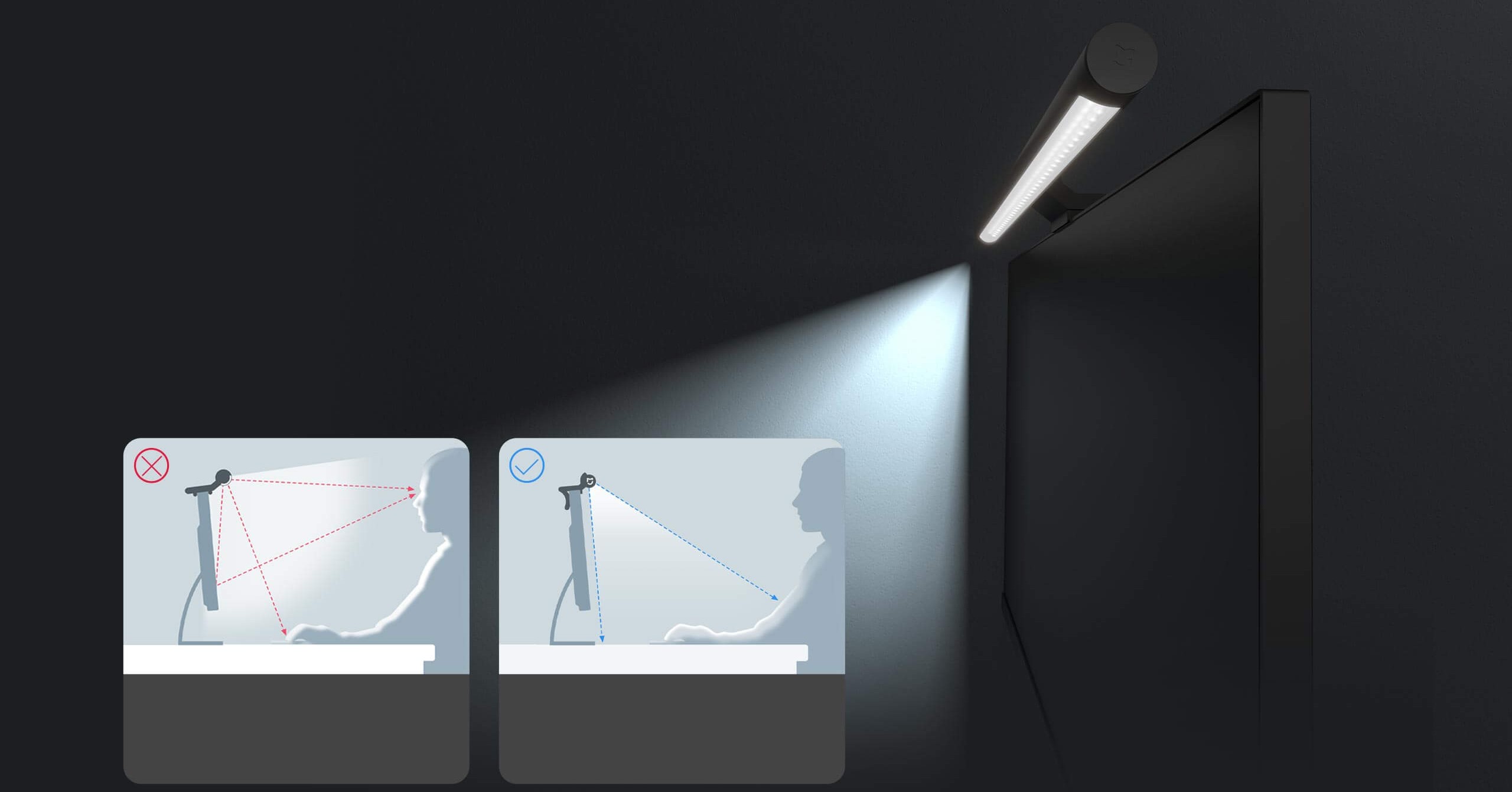 Mi Computer Monitor Light Bar разработан специально для работы за компьютером. Он освещает рабочую поверхность, не засвечивая экран, снижает нагрузку на зрение и помогает создать более комфортное рабочее пространство дома или в офисе.