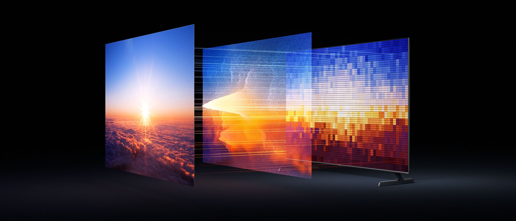 Модель оснащена 65-дюймовой панелью QD-Mini LED с 408 зонами локального затемнения. Яркость достигает 1700 нит, что обеспечивает высокую чёткость и контрастность картинки даже при просмотре HDR-контента. Разрешение экрана составляет 4K UltraHD, углы обзора — 178 градусов, частота обновления — 144 Гц. Технология MEMC отвечает за плавность динамичных сцен, а охват цветового пространства DCI-P3 достигает 92 %.